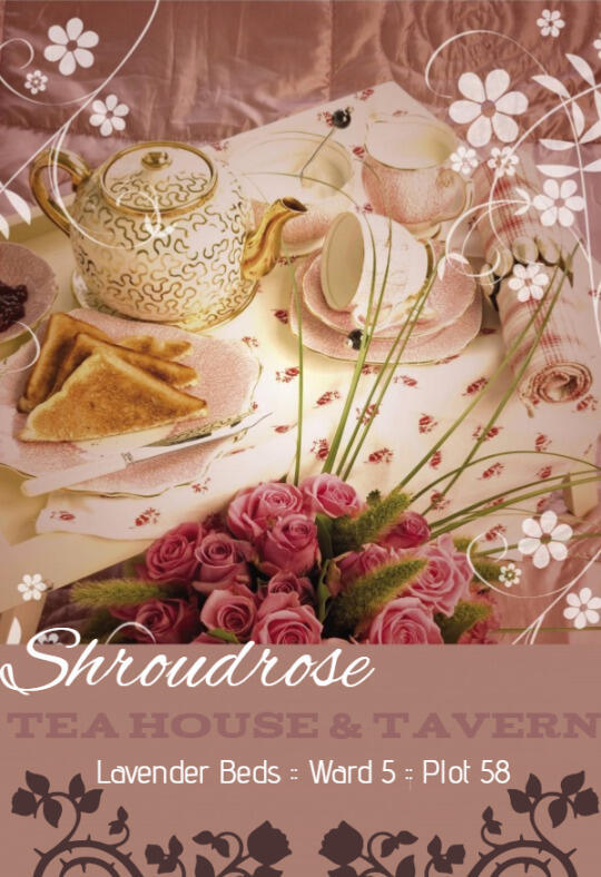 The Shroudrose Teahouse and Speakeasy is a cozy teahouse and bar nestled within the Lavender Beds of the Twelveswood, serving a wide array of beverages and snacks and selling their own specialty loose-leaf blends of tea. At least, that is what is most publicly known. Whispers tell that the establishment also serves as a front for an information brokerage and private investigations business. Secrets, lies, rumors, intrigue... what is it that you are seeking, or selling, perhaps? Pay us a visit and spill the tea--or just enjoy a warm drink and some pleasant company!