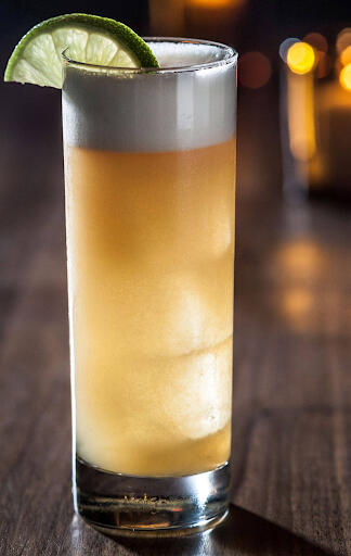 Phoenix 75 There is more than just cider for the discerning apple lover. Mirror apple juice, apple brandy, and gin comprise this sparkling drink, sweetened with maple syrup, and a dash of honey lemon juice and La Noscean orange juice, garnished with a slice of lime.