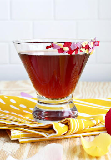 The Shroudrose Enjoy a taste of our teahouse with a tavern twist. This vodka drink encapsulates the spirit of Shroudrose with a specialty blend of white rose tea, sweet vermouth, fresh galago mint leaves, and aromatic bitters, garnished with honey and edible rose petal confetti.