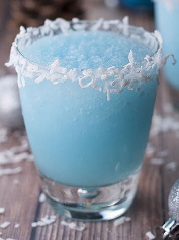 Diamond Dust Keep it chill with this pastel blue, slushy drink with light rum, coconut cream, pixie plum juice, and prickly pineapple juice, the rim dusted with coconut (snow)flakes. Kick up your heels and let it all go with this ice-cold drink.