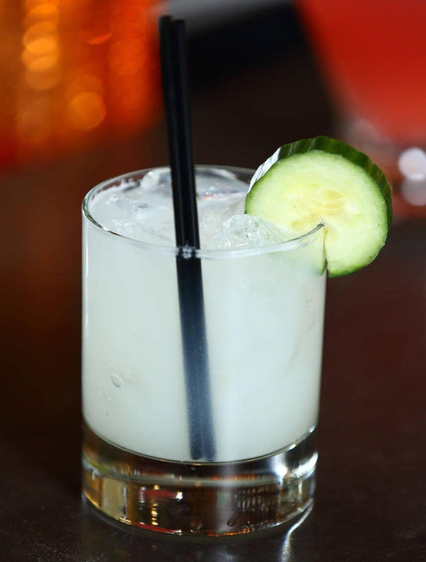 Esuna This refreshing drink combines gin, rose water, one egg white, aloe juice, a squeeze of honey lemon juice, and muddled cucumber, sweetened with powdered sugar and garnished with a slice of cucumber. It’s sure to cleanse you of your troubles and cure your ills!